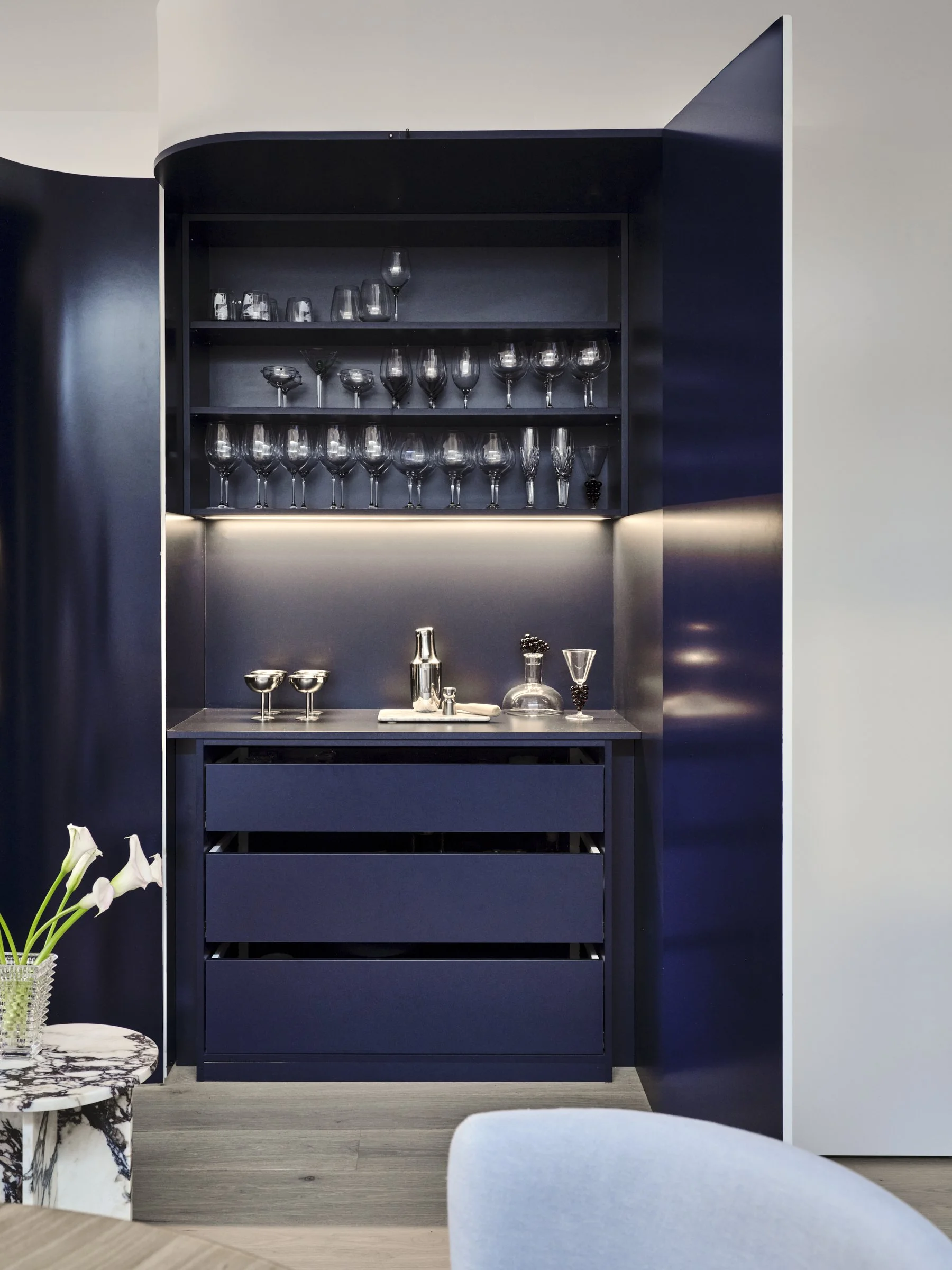 The design approach sought to create a series of spaces that each carry their own atmosphere and character, allowing the home to unfold as a sequence of experiences rather than a single, uniform interior. By considering consistent language of details, materials, textures, and colour, applied in thoughtful and unexpected ways throughout the house, we created unique and playful spaces for the family to grow and foster memories.