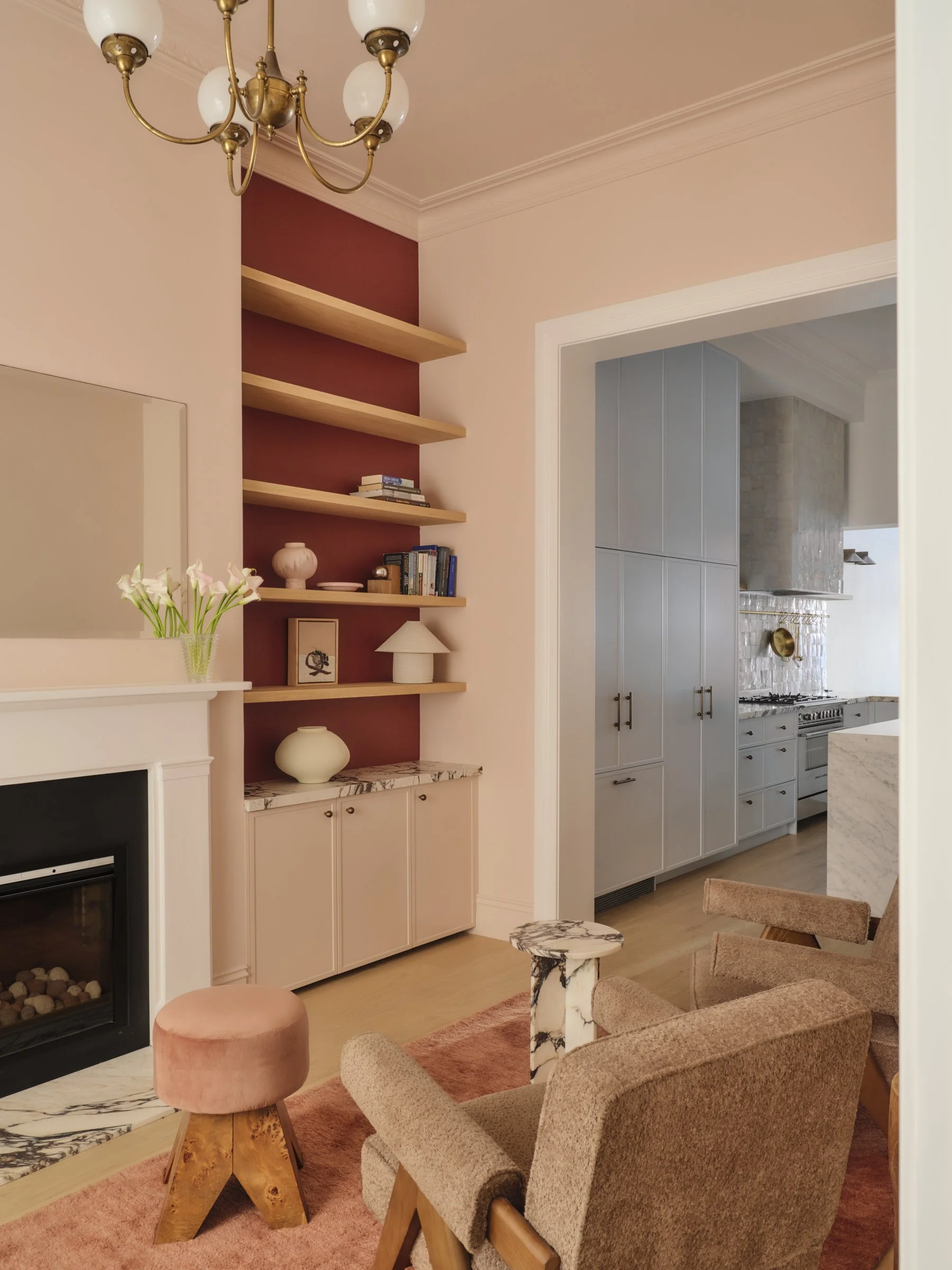With subtle colour drenching, this space still feels timeless, while the pops of colour add vitality and elegance without overwhelming the rooms.